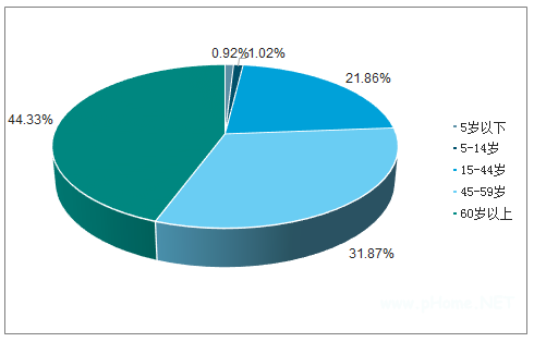 根据2018年调查数据,中国肿瘤病人发病人群中,60岁以上人员占比高达44.33%,45岁以上人员占比突破76%。以高血压、高血脂、心脏病等循环系统疾病更为典型,60岁以上人员占比约68.93%,45岁以上人员占比超过9成。