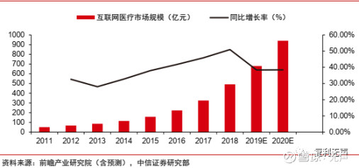 根据前瞻产业研究院预测,到 2020 年,我国互联网医疗市场规模有望突破 1000 亿元人民币。当前整体用户普及率仍然较低,未来有望继续快速增长,远没到天花板,潜力巨大。
