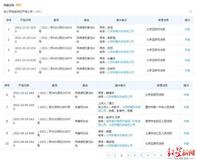 自2021年10月9日起,新氧将面临包括吴奇隆、华晨宇、鞠婧祎等明星的起诉。而在刚刚过去的9月,已有杨蓉、蒋梦婕等明星曾起诉新氧。